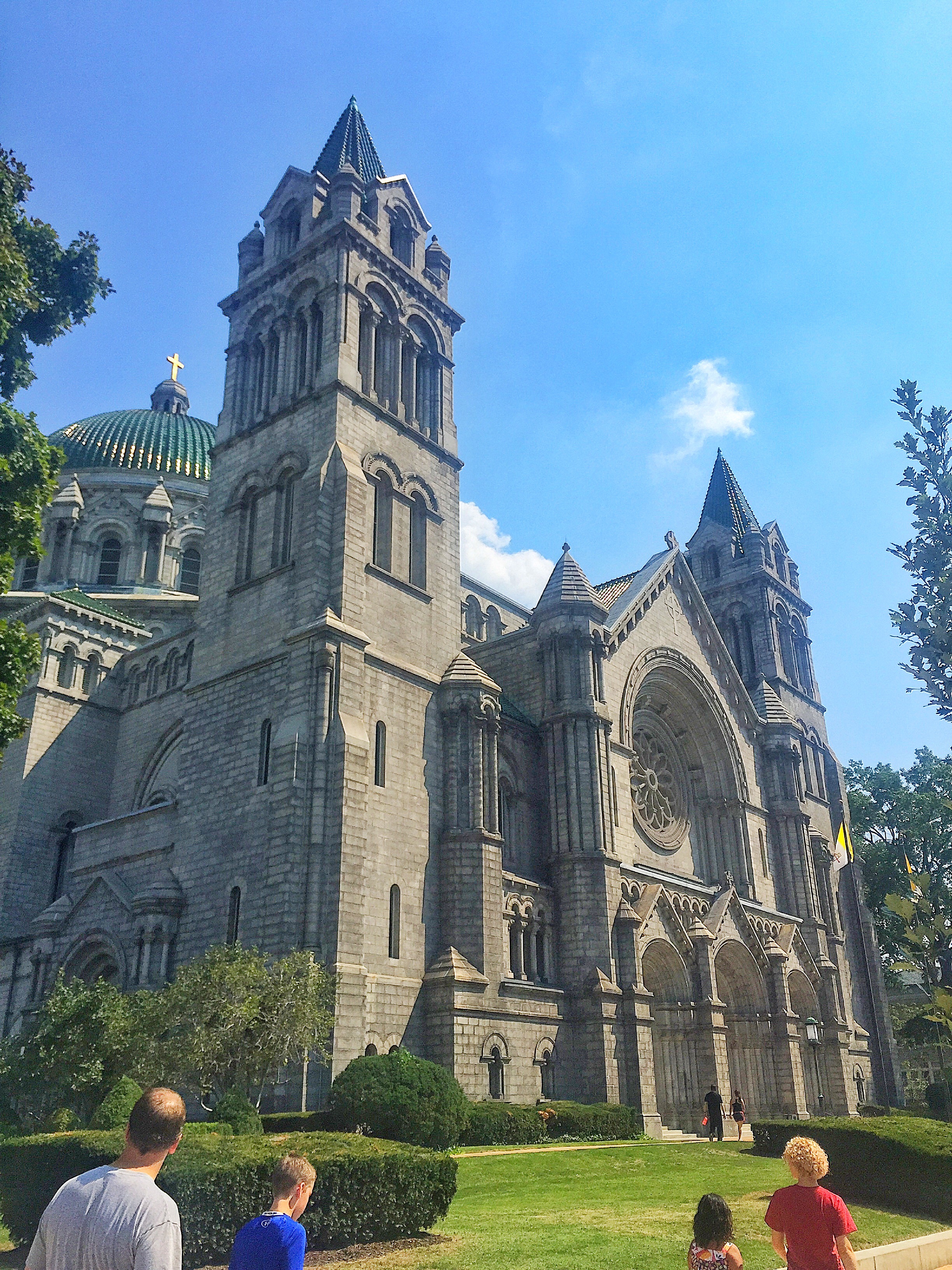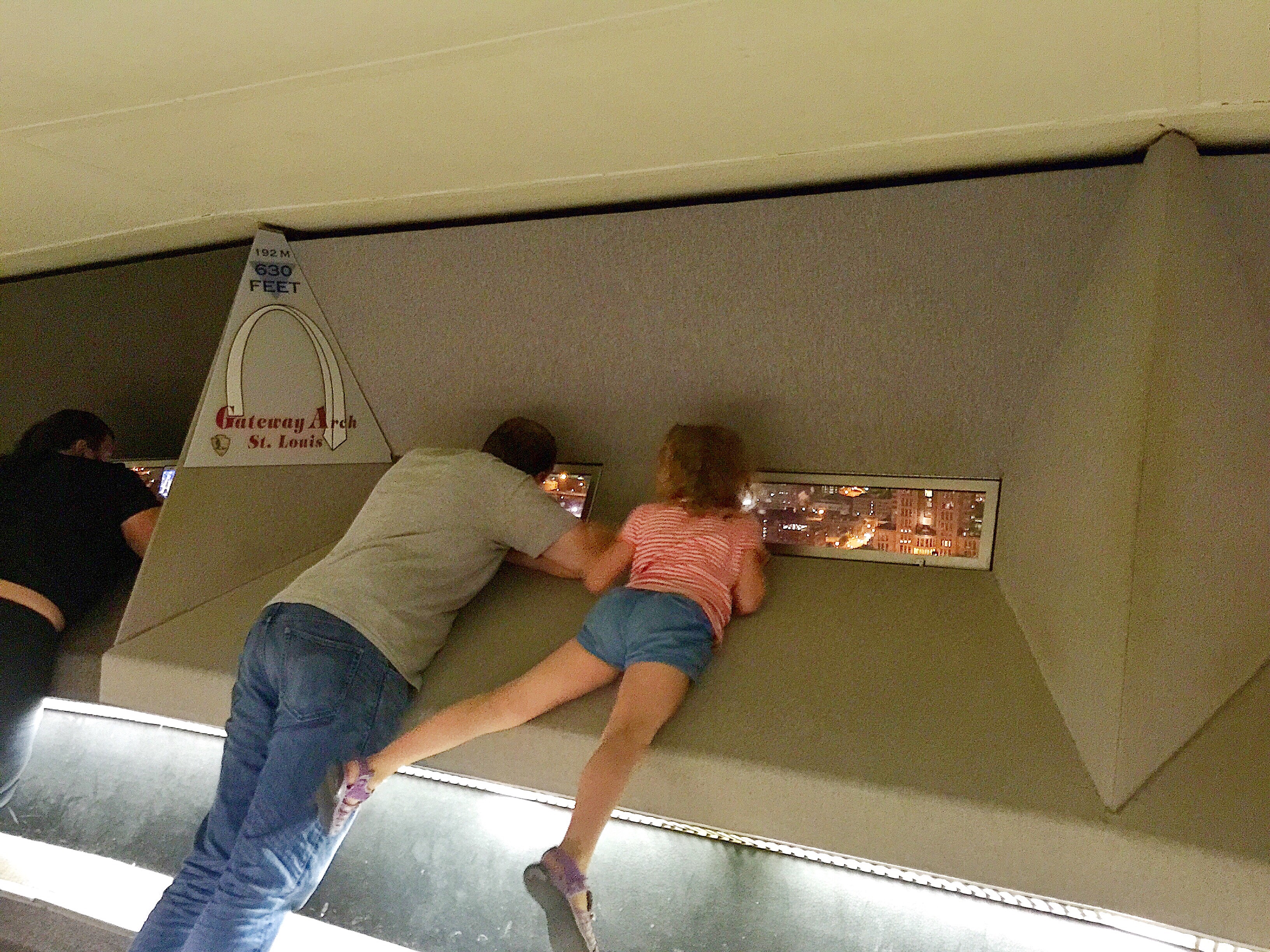 Next we walked over to Jefferson National Expansion Memorial, or the Gateway Arch, which turns 50 this year. Whoa. I was in Lewis and Clark mode; all the kids are deep in stories about the explorers, or Sacajawea, or Seaman, the dog on the expedition. Instead, we quickly tossed on our math hats and got our eyes all crossed trying to understand the advanced math required to grasp the Arch. (Only Brandon and Jane could even remotely follow the explanation.) The architects got the formula for it SORT OF like you would for a hanging chain or a parabola, but not exactly, more like a catenary, but not really, more like a modified catenary, or maybe a weighted catenary. Huh? Anyway, it’s a huge marvel, that only worked because the engineers didn’t get it wrong by even one-sixty-fourth of an inch. And nobody died, even though I didn’t see any safety measures, other than hold-on-tight, being taken by the workers. Try to youtube a video on the construction, if you’ve never been in the monument. We rode up to the top in a tiny little car, and we sort of fell in love with St. Louis, the rest of our visit further confirming the feeling.