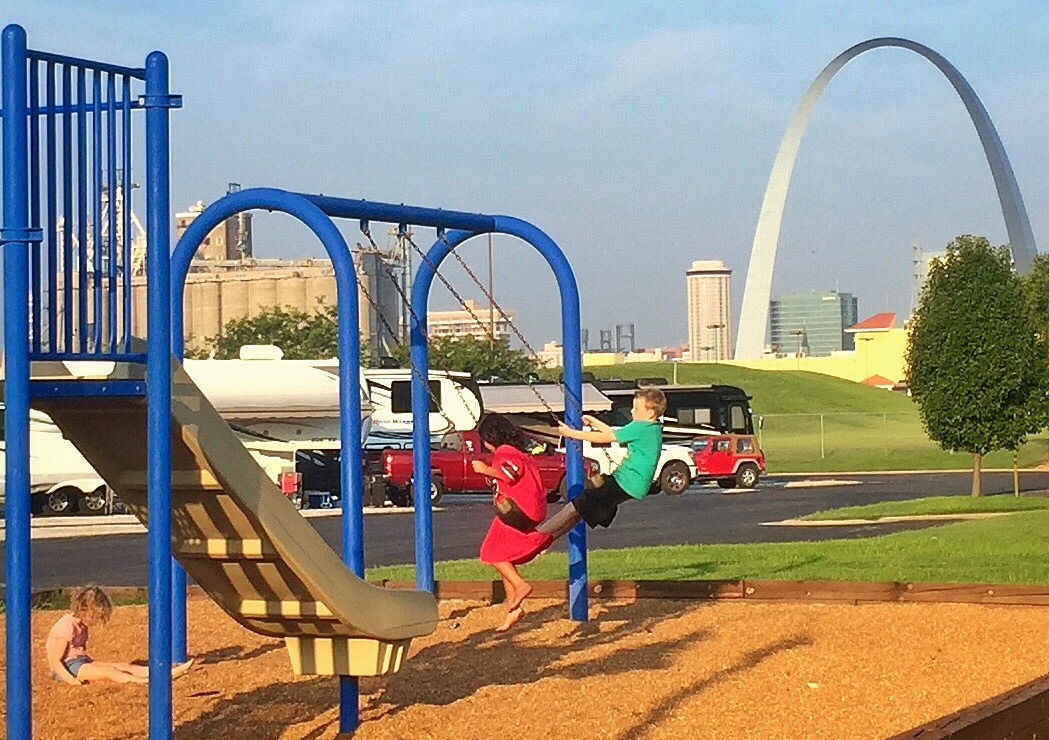 We slept at the Casino Queen RV Park across the river in East St. Louis with all the gamblers and Cardinals fans. It seemed like a promising locale in terms of ambiance, but the other campers were disappointingly quiet and well-behaved. The early risers in our group, Peter, Nan, Georgia, and me, are often obliged to keep silent for two hours until the rest of our party awakes; we were counting on a rowdy populace to blame for getting our day started earlier. Early morning is when all the laundry, blogging, and cereal-eating gets done. Sometimes there is not even a Cheerio left. Early bird, y’all…