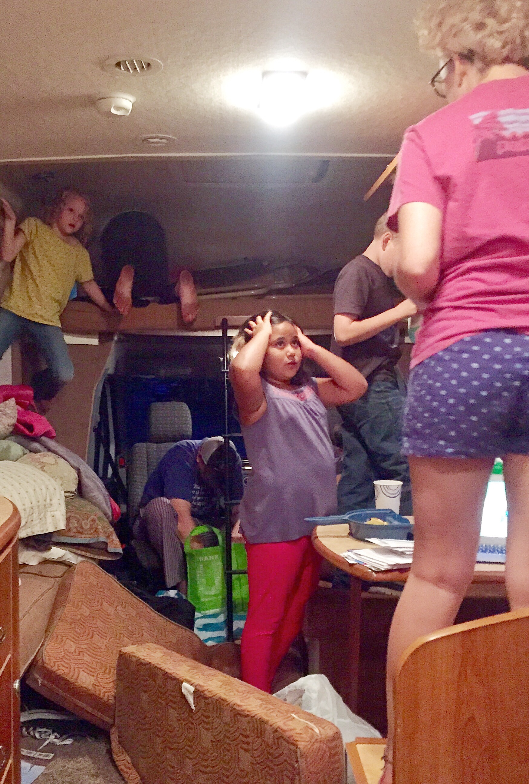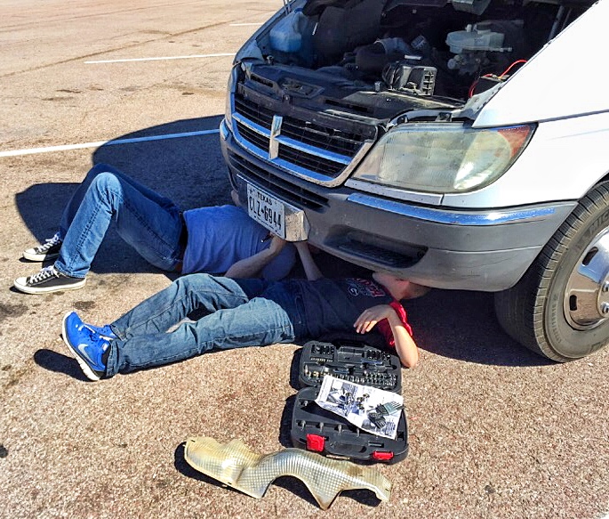 Eventually, Brandon picked us up, but his work was interrupted by a small electrical fire (!) in the RV caused by an errant water jug that crashed into something…electrical? He’s a Boy Scout; he took care of it.